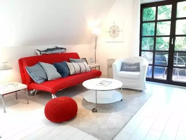 Große helle Wohnung mit Kaminofen zum rundherum Wohlfühlen. Große Terrasse mit Markise und Strandkorb. 2 Zimmer, Duschbad, Küche, Abtellraum, Flur. Waschmaschine. 49 qm.